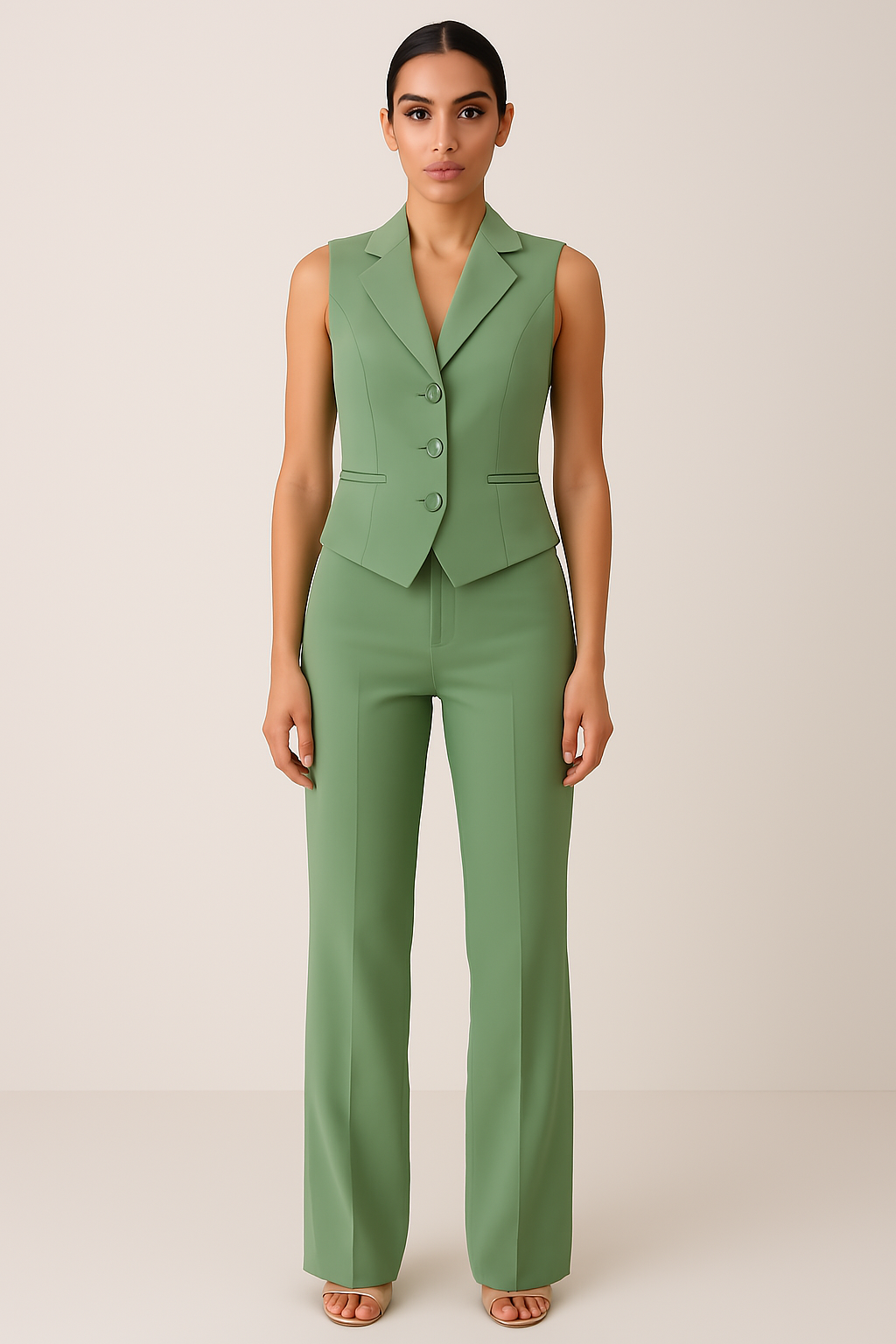 A cor verde é um diferencial estratégico: foge do lugar-comum dos tons escuros e proporciona uma leitura calorosa, acessível e refinada. É perfeita para compor com acessórios dourados, marfim, terracota, branco ou off-white, além de valorizar tecidos naturais como o linho, a seda e o algodão premium. Em combinação com peças minimalistas, o colete se destaca ainda mais e confirma seu papel como peça curinga de um guarda-roupa inteligente.