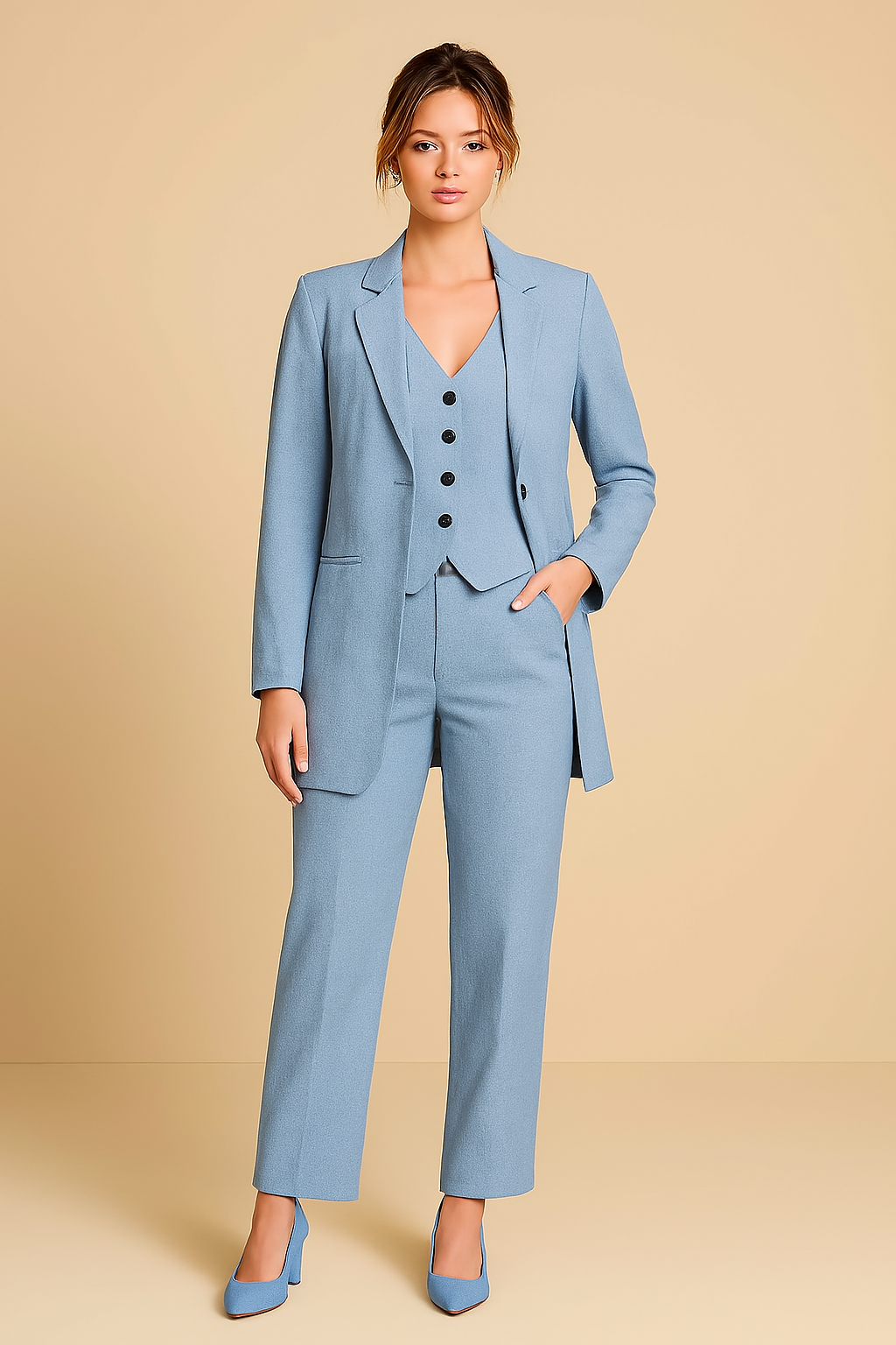 Este conjunto de alfaiataria é a expressão máxima da elegância contemporânea. Criado para mulheres que valorizam sofisticação, versatilidade e acabamento impecável, ele reúne três peças essenciais — blazer, colete e calça — em uma composição que transcende o tempo e as tendências. Cada elemento foi cuidadosamente pensado para oferecer não apenas beleza, mas também conforto, funcionalidade e presença. É uma proposta que une o clássico ao moderno, ideal para quem deseja se destacar com discrição e refinamento.