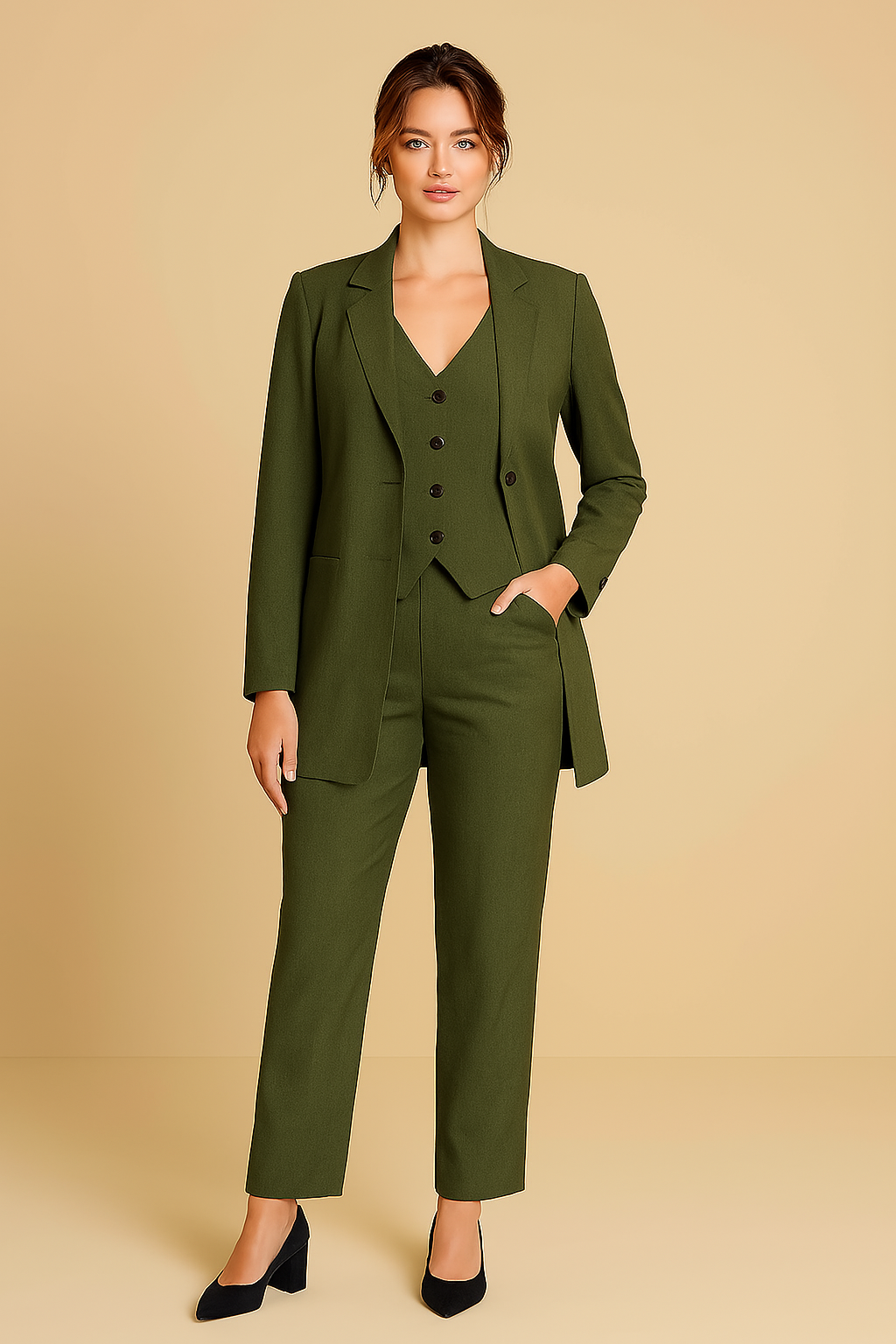 Conjunto de Colete, Calça e Blazer Verde