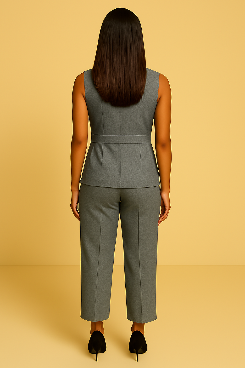 Este conjunto foi desenvolvido com foco na mulher contemporânea, que desempenha múltiplos papéis ao longo do dia e precisa de roupas que acompanhem esse ritmo. Seja para um dia de trabalho, um encontro casual ou um evento especial, ele se adapta com facilidade, permitindo diferentes combinações e estilos. A blusa pode ser usada com outras peças de alfaiataria, saias ou jeans, enquanto a calça é perfeita com camisas, camisetas ou blusas mais estruturadas. Juntas, formam um conjunto harmonioso e cheio de personalidade, mas também funcionam muito bem separadamente, ampliando as possibilidades do guarda-roupa.